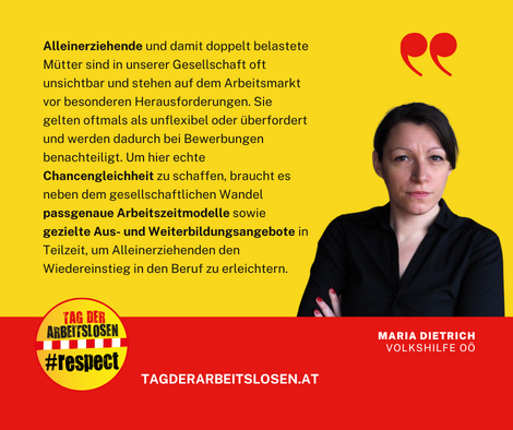 Am 30. April ist der Tag der Arbeitslosen, der auf die Situation und Bedürfnisse von arbeitssuchenden Menschen aufmerksam macht. Eine Aktionsgruppe mit sozialen und kirchlichen Organisation sowie Gewerkschaftsgruppen widmet sich jedes Jahr dem Themenkomplex Arbeitslosigkeit, Arbeitsmarktpolitik, Armut und Solidarität. Ziel ist, die Öffentlichkeit zu sensibilisieren und Vorurteile zu überwinden, Einblicke in die Lebensrealität von erwerbs-arbeitslosen Menschen zu geben und auch politische Forderungen zu stellen. 2025 widmen wir uns arbeitslosen und alleinerziehenden Frauen, für die der Weg in den Arbeitsmarkt zahlreiche Hürden bereit hält.