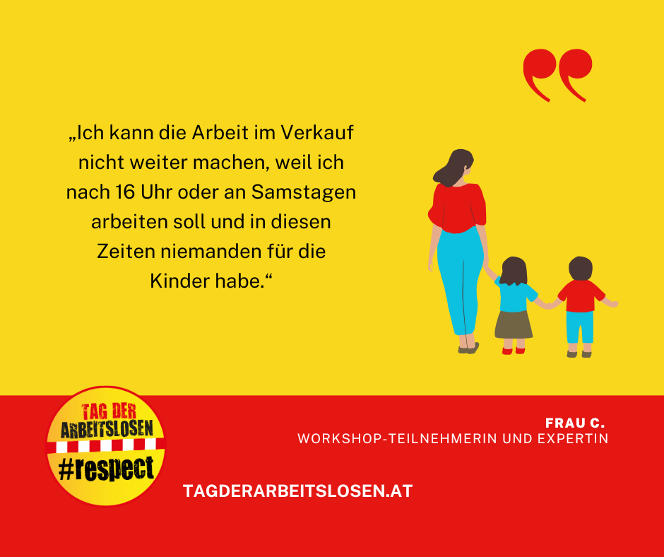 Im Handel und Gastgewerbe sind Arbeitszeiten oft bis spät am Abend oder an Wochenenden gefordert. Arbeitszeiten und die Betreuung von Kindern unter einen Hut zu bekommen, ist für alleinerziehende, Arbeit suchende Frauen oft ein Ding der Unmöglichkeit. Viele Jobs können sie deshalb nicht annehmen. Sie schreiben Bewerbung um Bewerbung, ohne dass sich eine Tür für sie auftut. Für sie ist es eine oft langwierige Herausforderung, einen Weg aus ihren prekären Lebenssituationen zu finden.